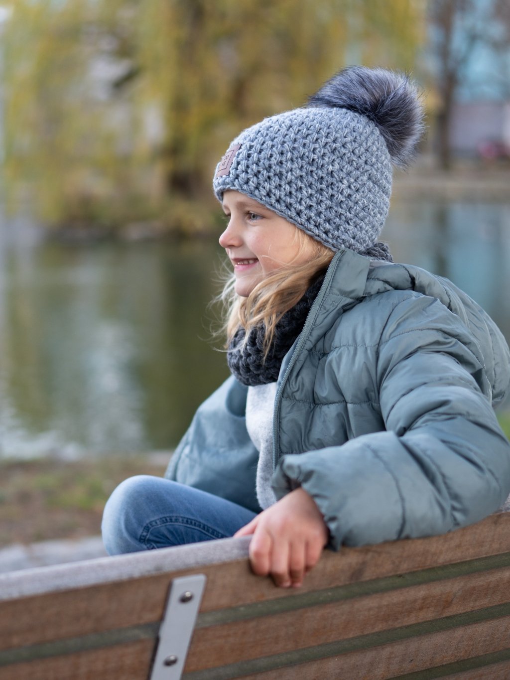 Detský háčkovaný kulich denim