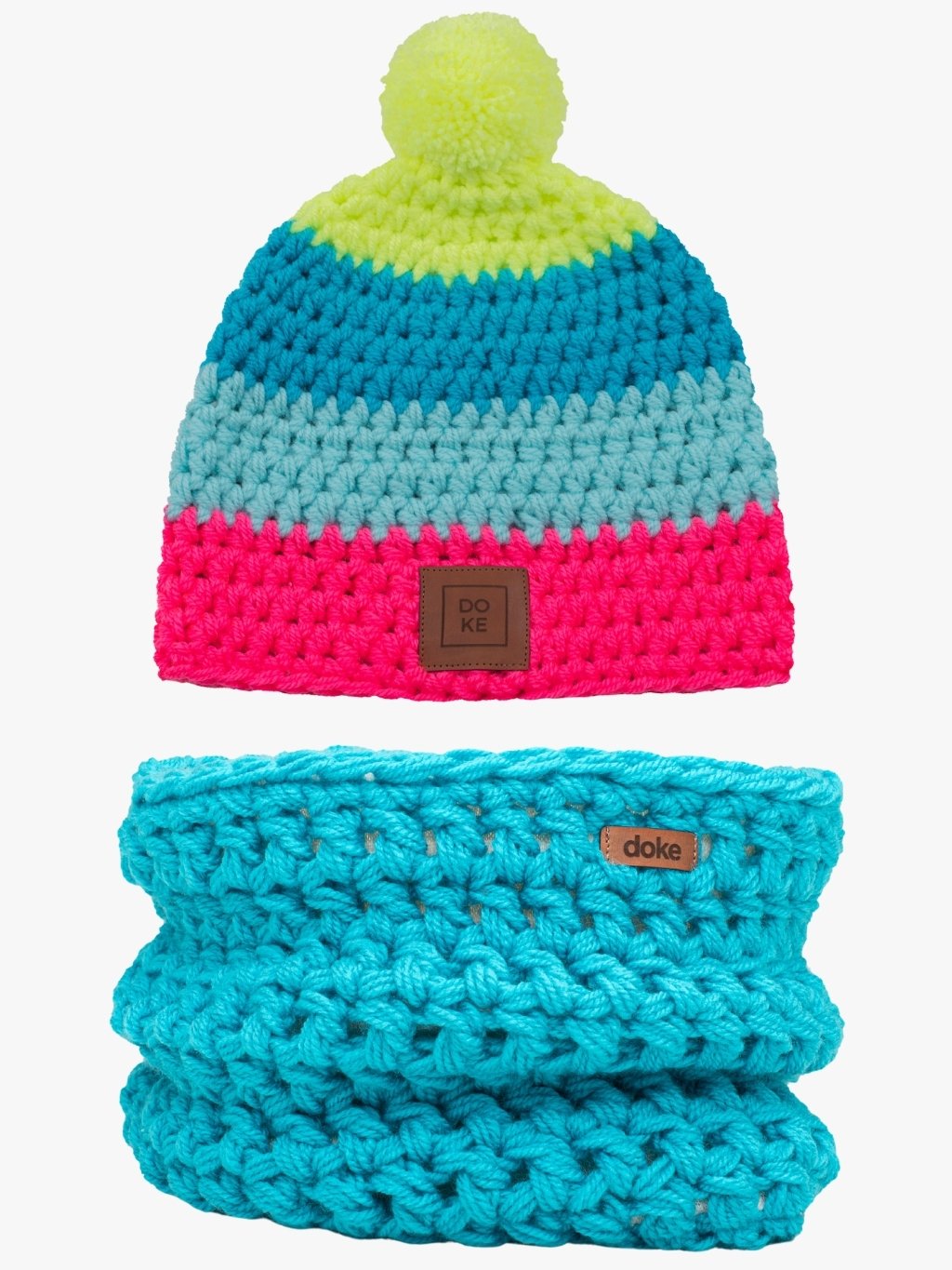 Ručne háčkovaná čiapka a nákrčník z hrejivej priadze. Čiapka je podšitá 10 cm pruhom funkčného úpletu. Doke je rýdzo česká výroba z jesenických hôr.