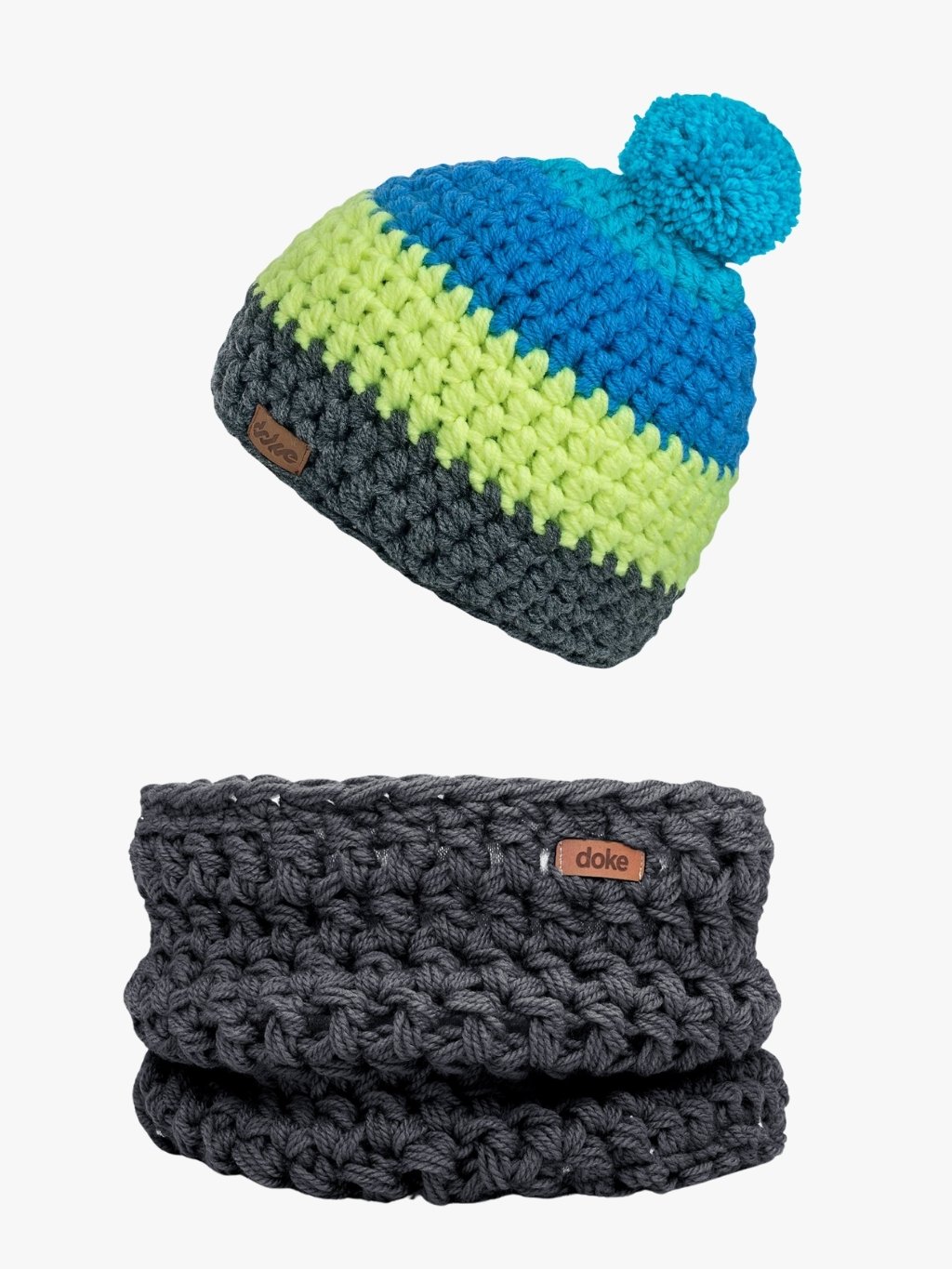 Ručne háčkovaná čiapka a nákrčník z hrejivej priadze. Čiapka je podšitá 10 cm pruhom funkčného úpletu. Doke je rýdzo česká výroba z jesenických hôr.