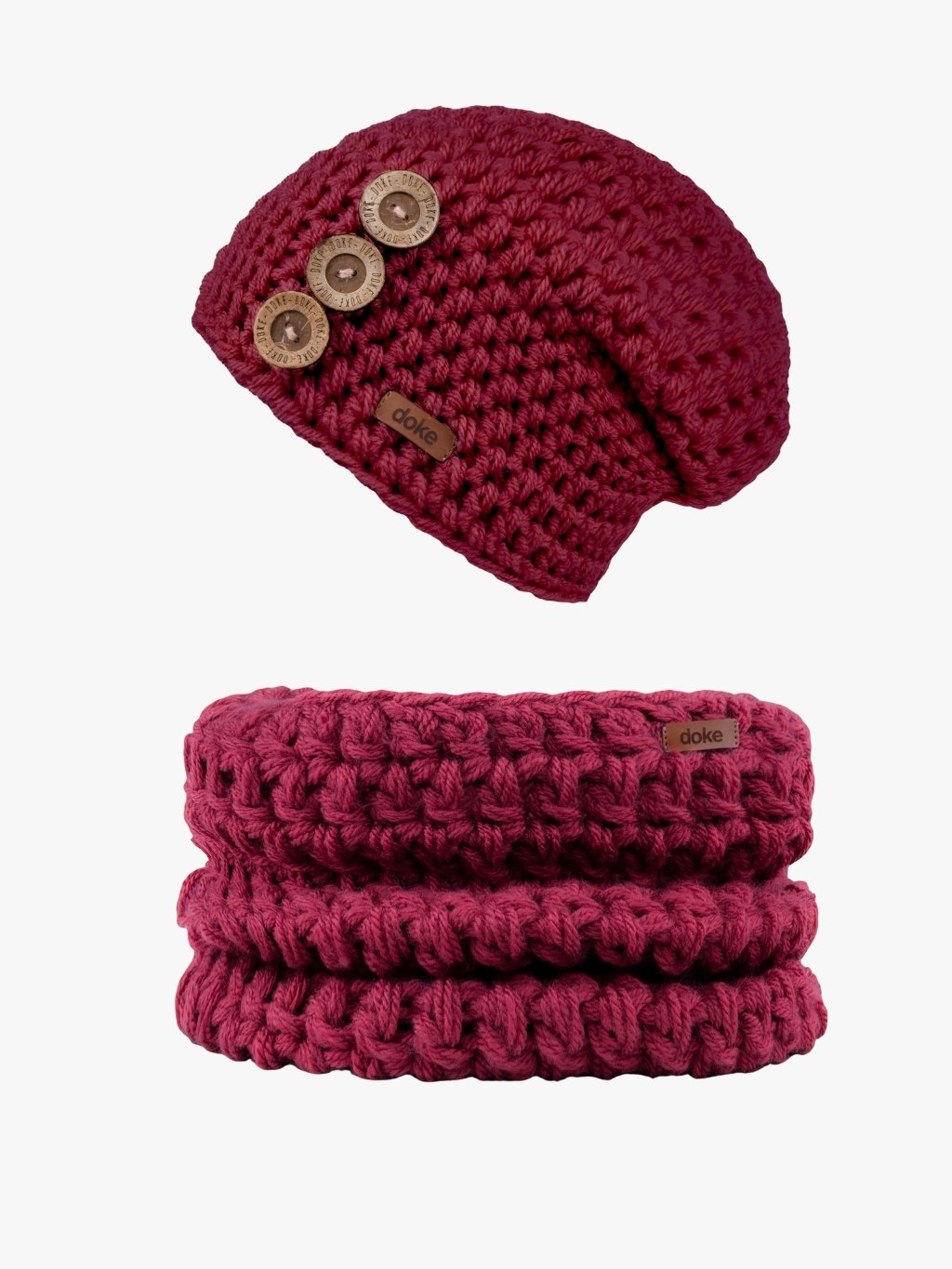 Ručne háčkovaná čiapka a nákrčník z hrejivej priadze. Čiapka je podšitá 10 cm pruhom funkčného úpletu. Doke je rýdzo česká výroba z jesenických hôr.