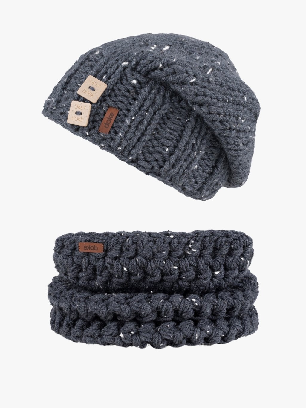 Štýlová súprava čiapky a šálu, ktorá vás zahreje v mrazivých dňoch a zároveň zvýrazní každý váš outfit. Ručne pletená čiapka z hrejivej priadze je podšitá 10 cm pruhom funkčnej pleteniny. Doke je čisto česká výroba z Jeseníkov.
