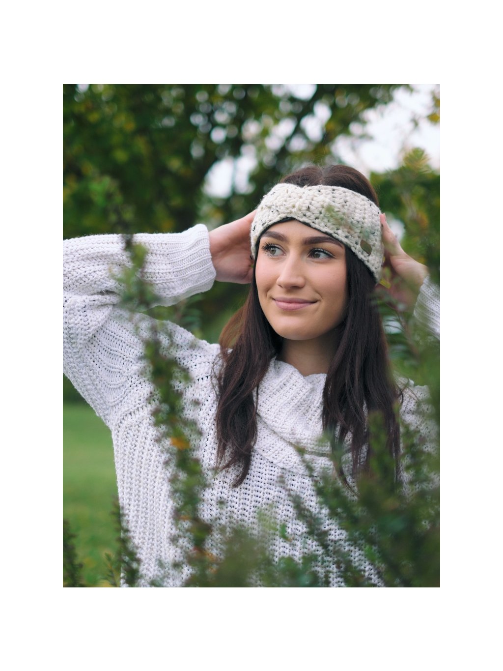 Háčkovaná čelenka s krížením lily tweed