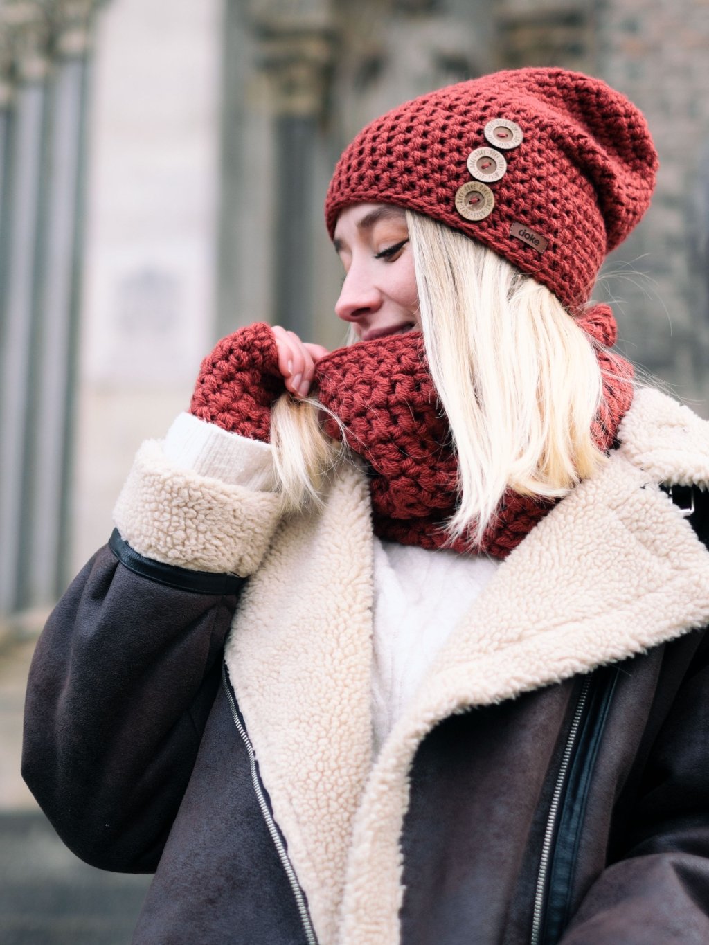 Kruhový, ručne háčkovaný nákrčník, zahreje v dňoch najväčšieho mrazu, ale rovnako tak okorení každý zimný outfit. Žiadne zložité omotávanie okolo krku, kruhový šál nasadíte a môžete vyraziť. Doke je rýdzo česká výroba z jesenických hôr.