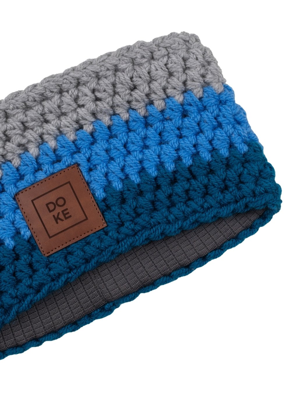 Háčkovaná čelenka je vyrobena z příjemné a hřejivé příze, podšitá funkčním úpletem. Je doplněna koženým logem. Doke je ryze česká výroba z jesenických hor.