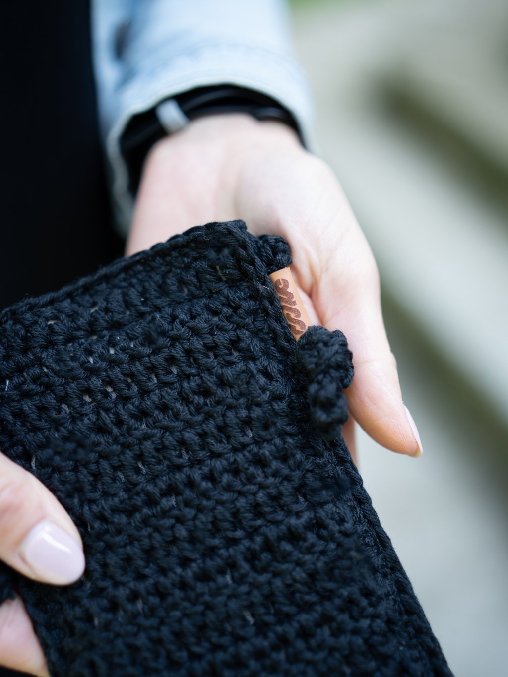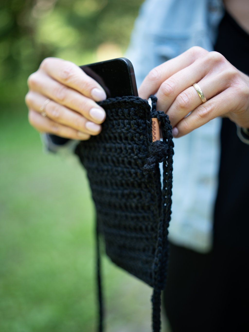 Háčkovaná taška na telefon black