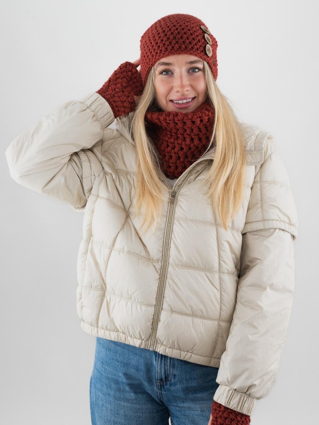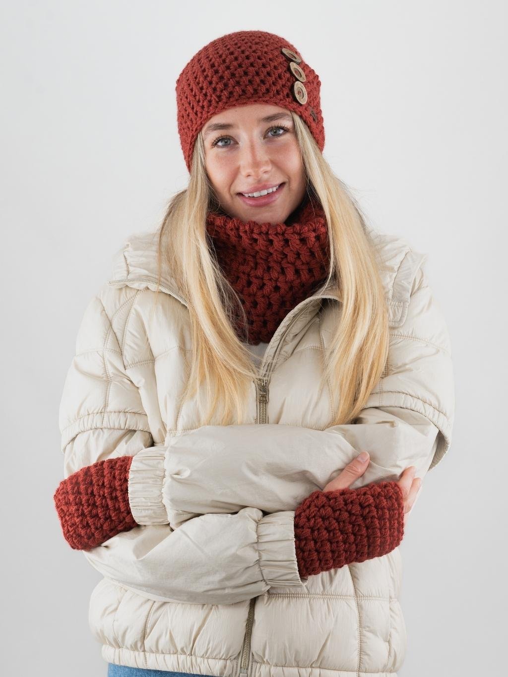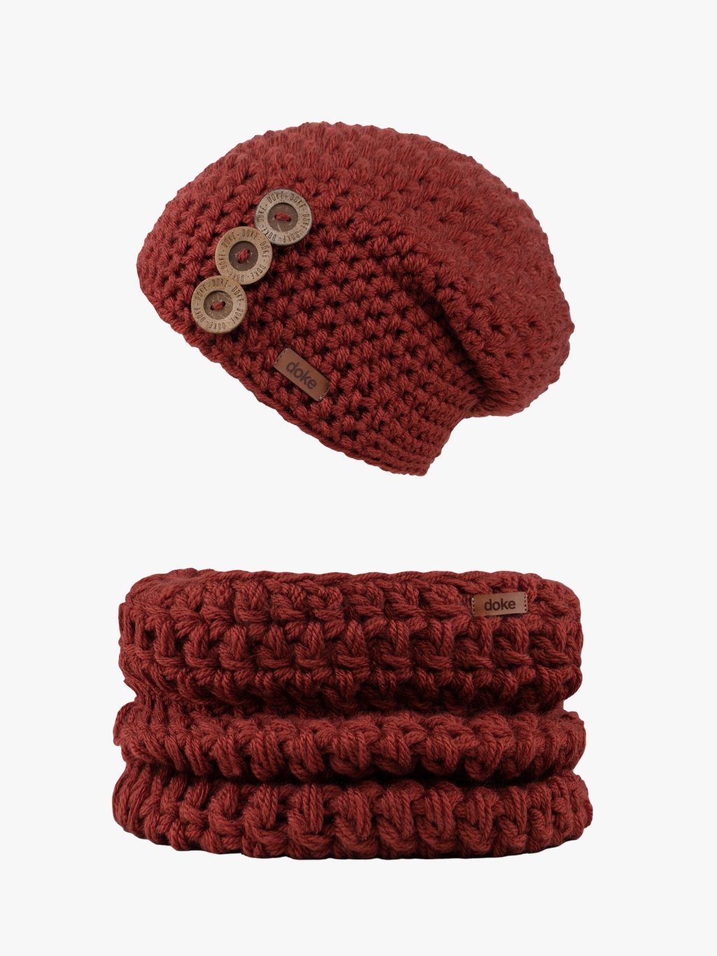 Štýlová čiapka a šál v unikátnych farebných kombináciách, ktorá v dňoch urputných mrazov zahreje a navyše vyladí každý Váš outfit. Ručne pletená čiapka z hrejivej priadze je podšitá 10cm pruhom Funkčného úpletu. Doke je rýdzo česká výroba z jesenických hôr.