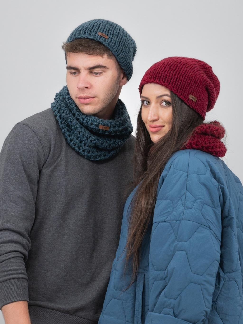 Set merino pletená čiapka a háčkovaný nákrčník roy meer