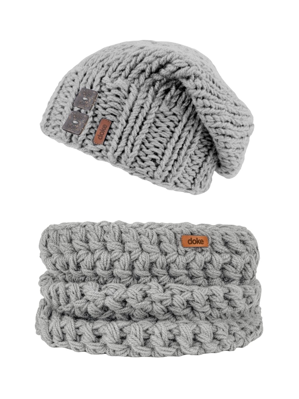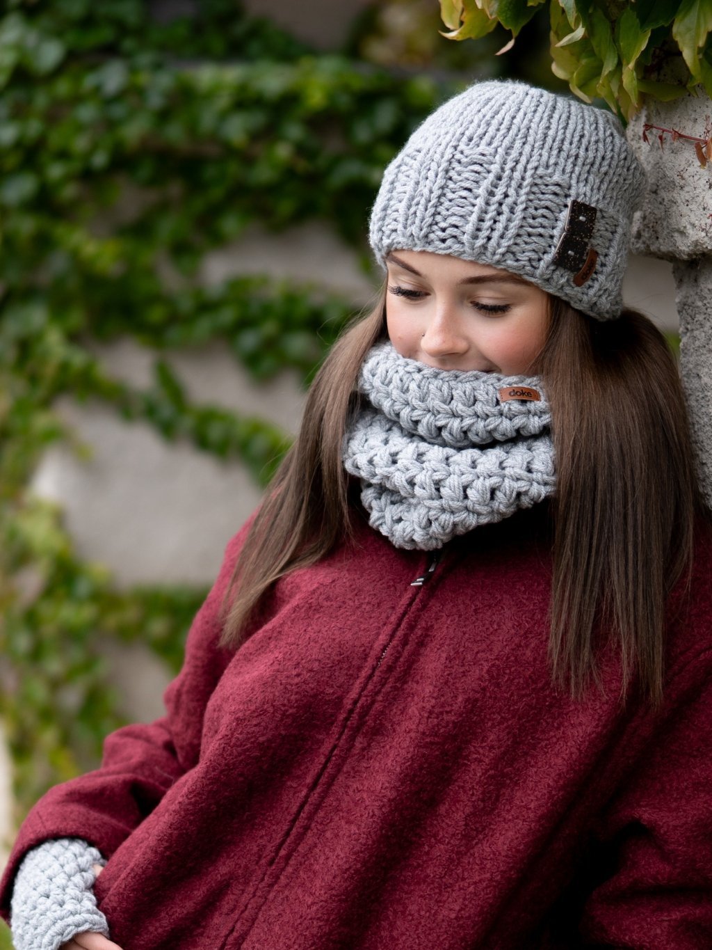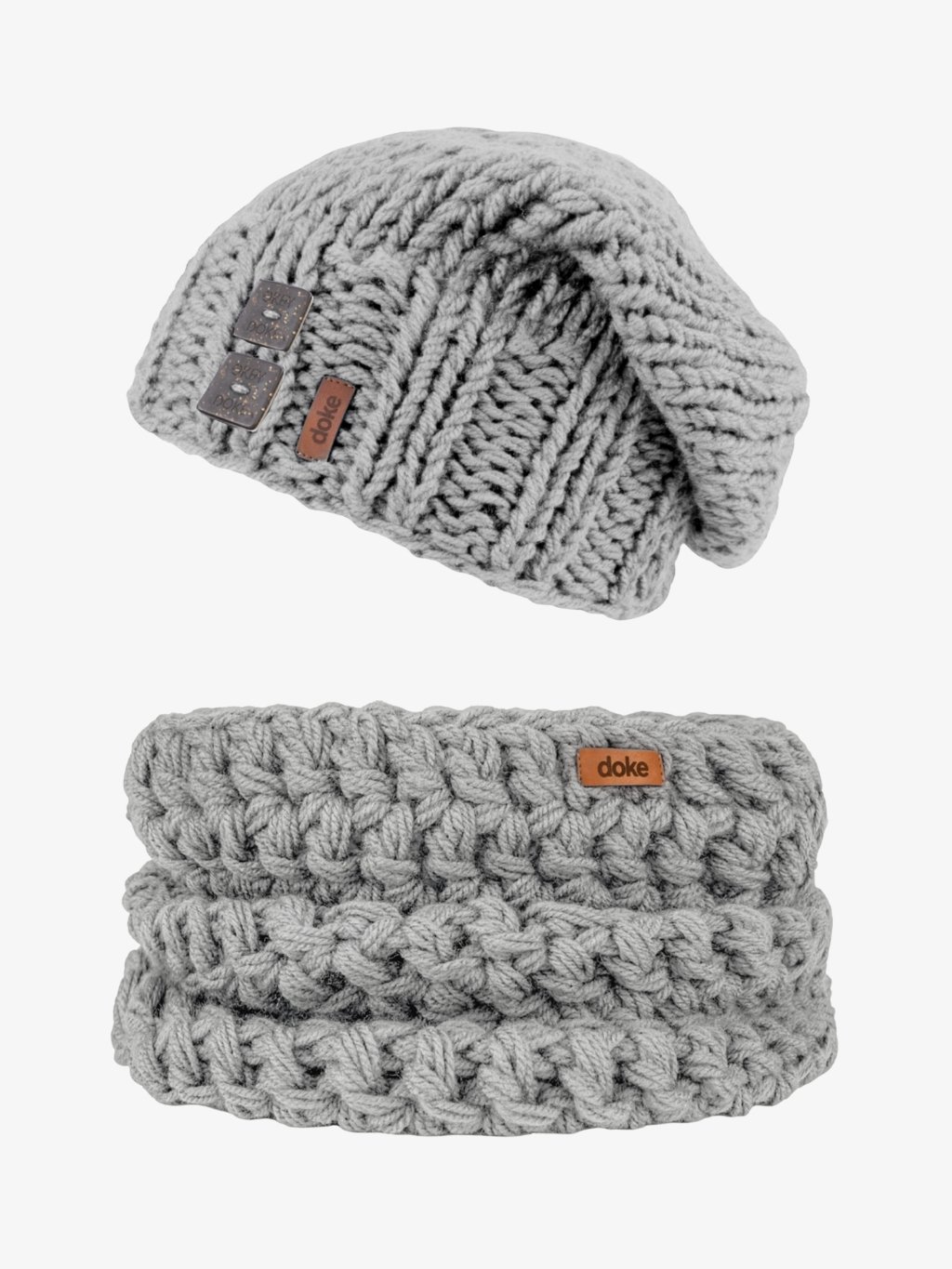 Štýlová súprava čiapky a šálu, ktorá vás zahreje v mrazivých dňoch a zároveň zvýrazní každý váš outfit. Ručne pletená čiapka z hrejivej priadze je podšitá 10 cm pruhom funkčnej pleteniny. Doke je čisto česká výroba z Jeseníkov.