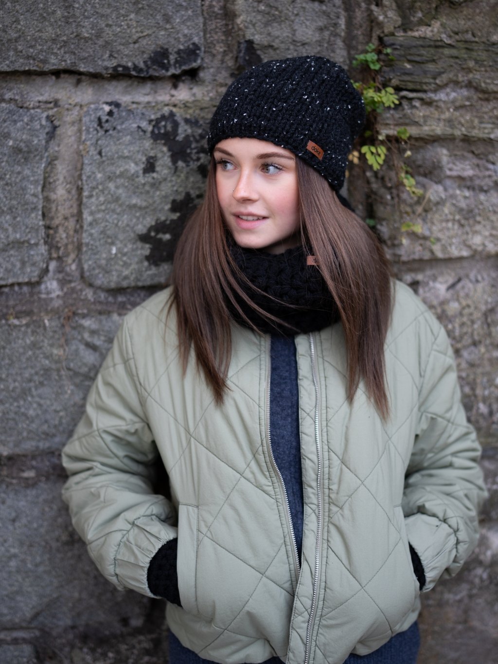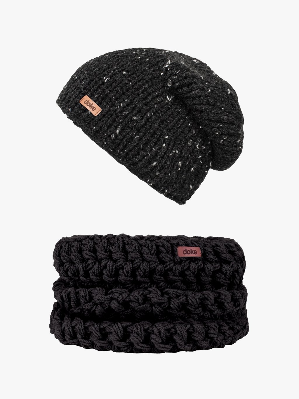 Štýlová súprava čiapky a šálu, ktorá vás zahreje v mrazivých dňoch a zároveň zvýrazní každý váš outfit. Ručne pletená čiapka z hrejivej priadze je podšitá 10 cm pruhom funkčnej pleteniny. Doke je čisto česká výroba z Jeseníkov.